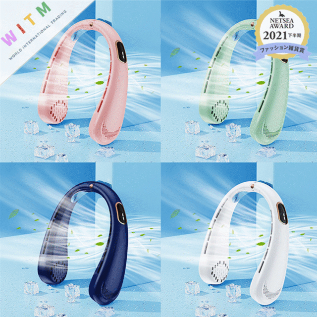 電動扇風機 首掛け 携帯扇風機 風量3段階調節 USB充電機能付き