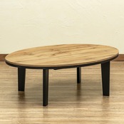 重厚なヴィンテージテイストの木目調天板が特徴のオーバル型コタツです。