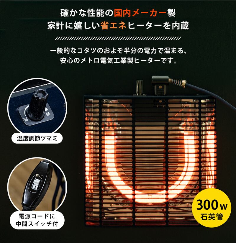 ヒーター:300W U字型石英管ヒーター、 3mコード(中間スイッチ)