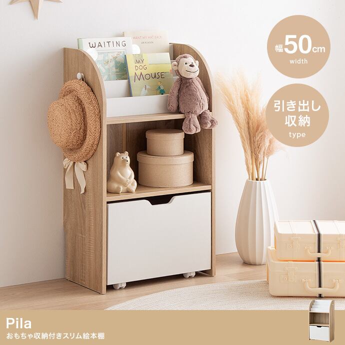 【幅50cm】Pila おもちゃ収納付きスリム絵本棚