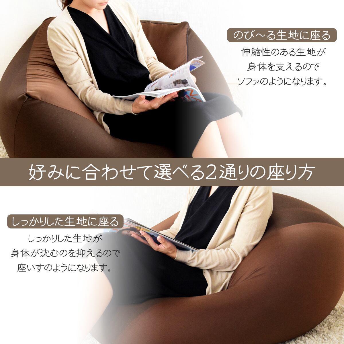 伸縮性のある生地が身体を支えるのでソファのようになります。
