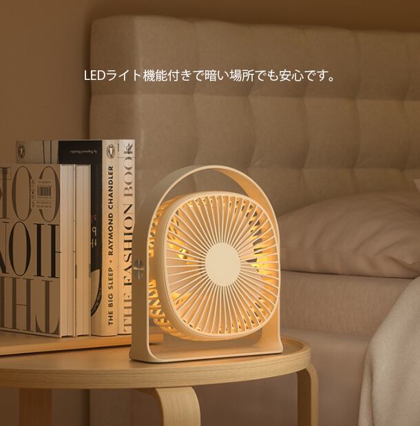 卓上扇風機 動画あり 扇風機 強風 静音 USB 角度調整 5枚羽根 ミニファン 5段階風量 ライト パワフル