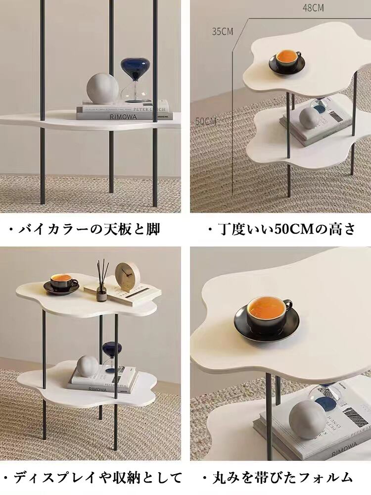 ・丸みを帯びたフォルムが可愛い2段サイドテーブルです。