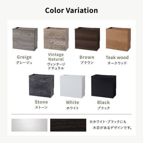 グレージュ、ヴィンテージナチュラル、ブラウン、チークウッド、ストーン、ホワイト、ブラック